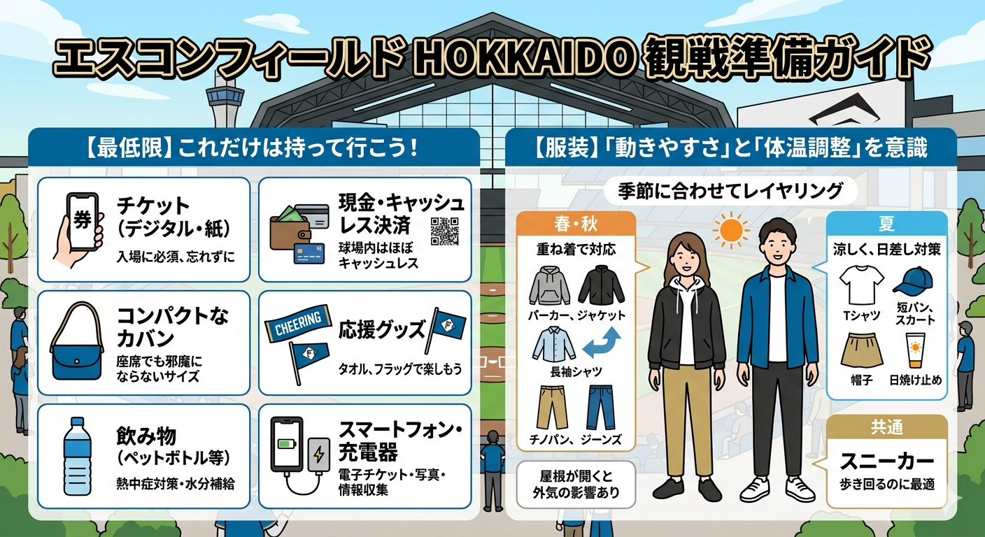 ここでは、エスコンフィールドで観戦する前にまず準備したい持ち物と服装について、わかりやすく紹介します。