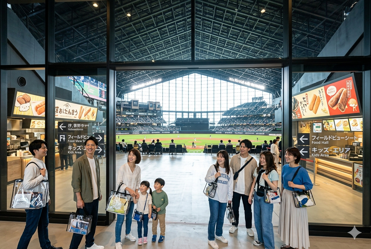 野球場では、飲食物や荷物の持ち込みに関するルールが決められていることがあります。エスコンフィールドHOKKAIDOでも、持ち込みできるものと制限されるものがあるため、事前確認がおすすめです。