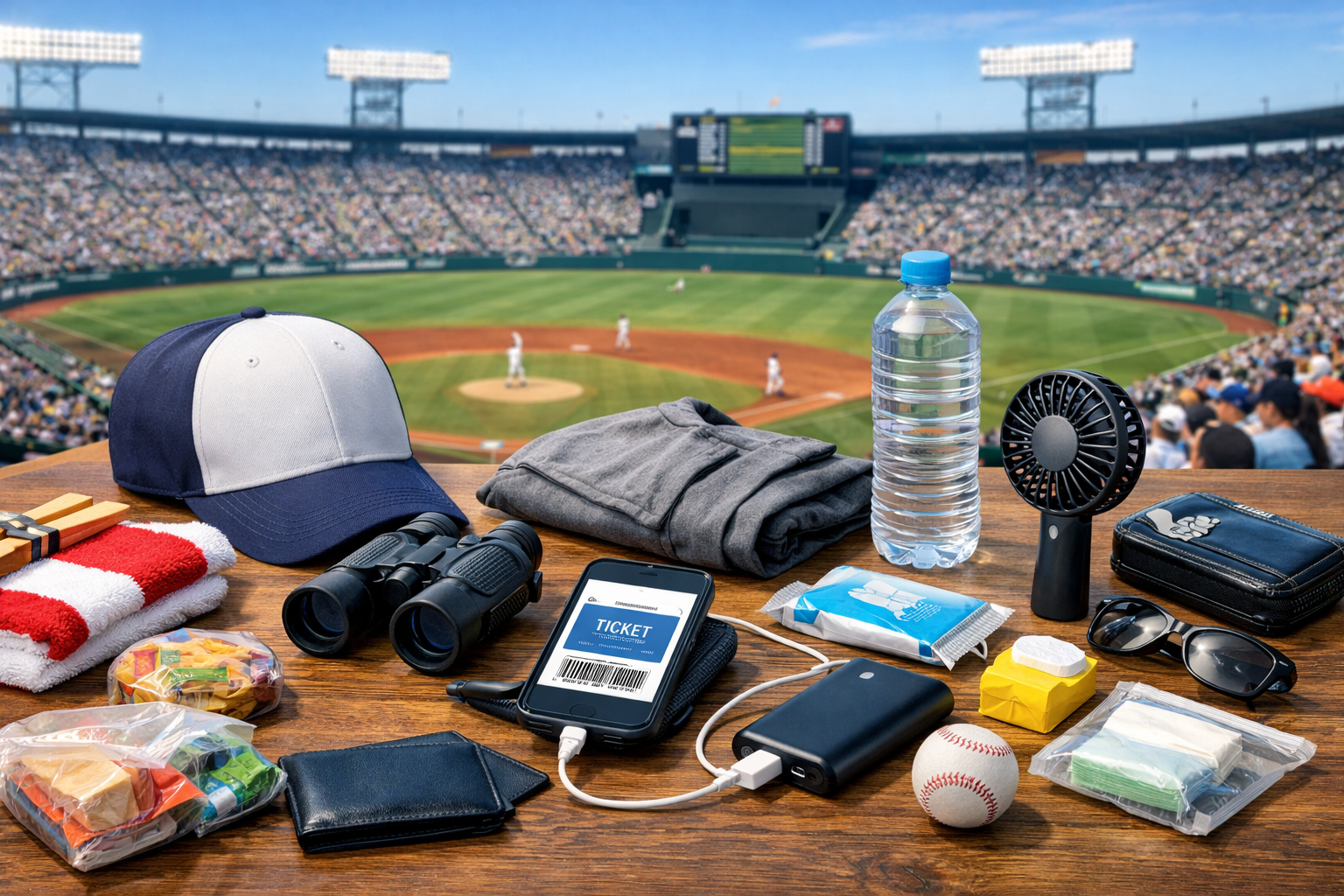 野球観戦では、チケット・スマホ・財布を基本に、季節に合わせた持ち物を用意しておくと安心です。
